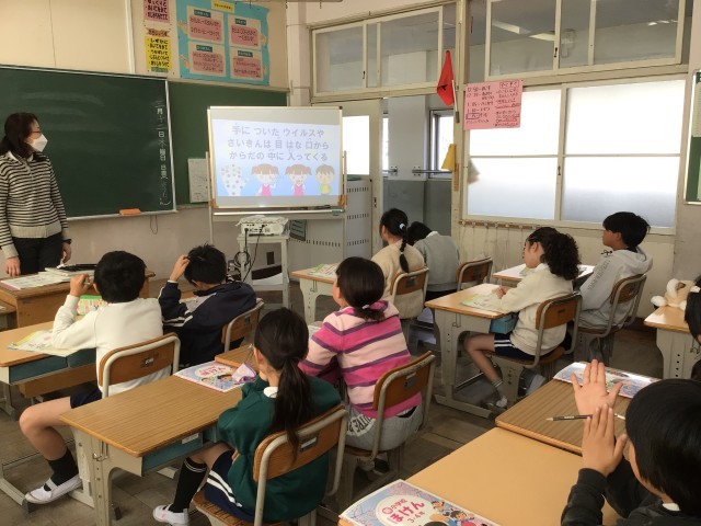 3/12 3年生保健 公開日 2026/03/12 更新日 2026/03/12 各学年から 3年生の保健体育では、養護教諭の先生に教えていただきながら、「からだの清潔と健康」について学習をしました。からだや服を清潔にすることはどうして大切なのかを考えました。