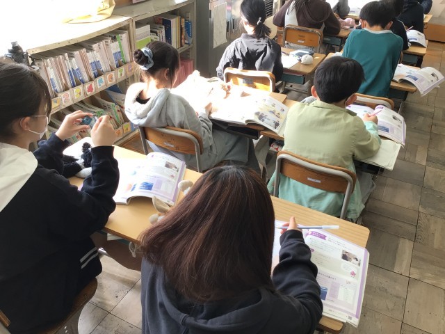 5年理科では、人のたんじょうの単元を学んでいます。「学んだことを確かめよう」というめあてで、教科書のまとめのページを使って、復習を行っていました。