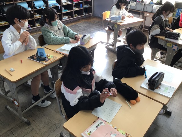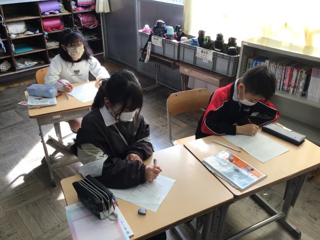 3/17 4年国語 公開日 2026/03/17 更新日 2026/03/17 各学年から 4年国語では、十年後のわたしへの単元を学んでいます。本題に入る前に、2限の都道府県名テストに向けて、難しい漢字を練習し、字の確認を行っていました。