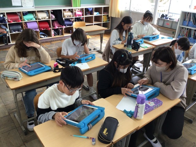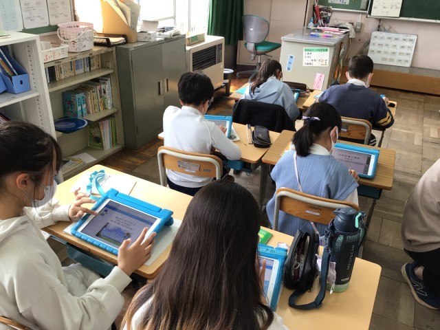 3/18 4年社会 公開日 2026/03/18 更新日 2026/03/18 各学年から 4年社会では、社会のまとめや観光大使について、学習用タブレットの発表ノートにまとめていました。夢中になってページを編集していました。