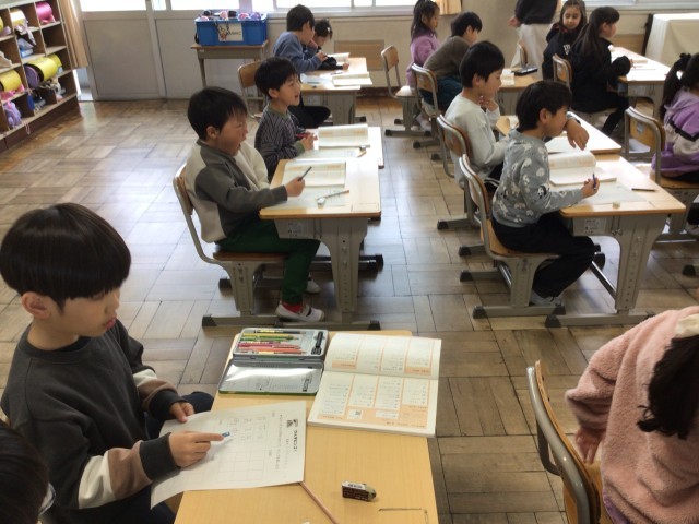 3/23 1年生国語 公開日 2026/03/23 更新日 2026/03/23 各学年から 1年生の国語では、今まで学習した漢字をつかって「漢字ビンゴゲーム」をしました。ビンゴのプリントに漢字を書いて、友だちが書いてくれた漢字があるかどうか確認し丸で囲みました。漢字があると喜んで丸をつけていました。