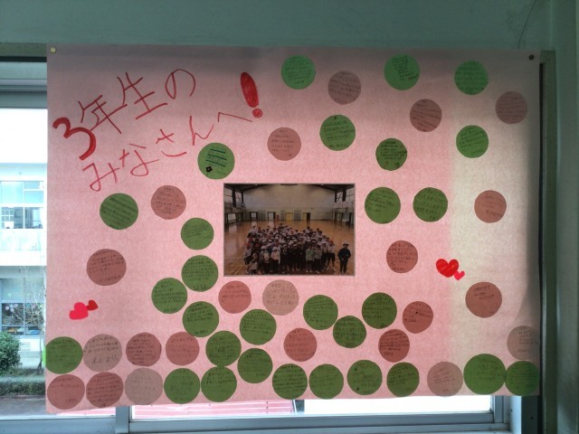 3/23 卒業生より 公開日 2026/03/23 更新日 2026/03/23 各学年から 19日に卒業した6年生からのメッセージが掲示してありました。6年生が1〜5年生に向けて書いてくれたものです。卒業生から在校生へのメッセージは素敵な宝物です。
