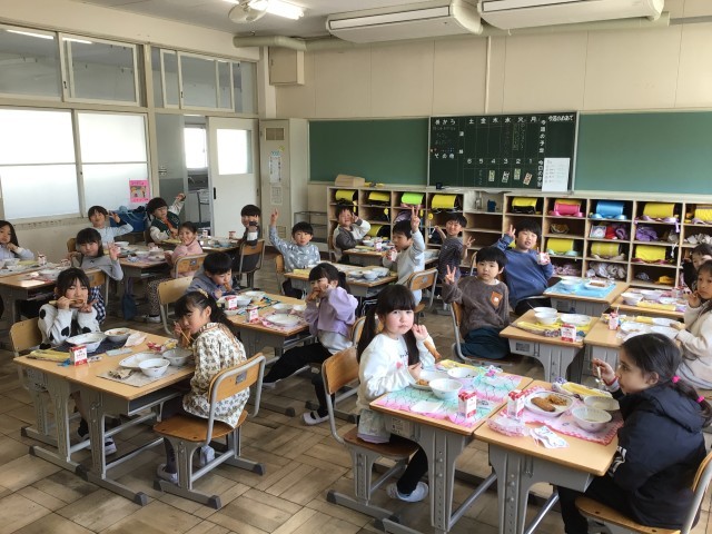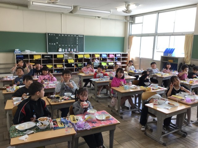 3/23 楽しい給食1 公開日 2026/03/23 更新日 2026/03/23 特別活動 今日の献立は、キムチチャーハン、牛乳、愛知の野菜入り春巻き、わかめスープ、乾燥小魚です。今日は今年度最後の給食です。一年間、いろいろな料理を楽しく食べることができましたね。