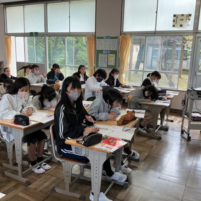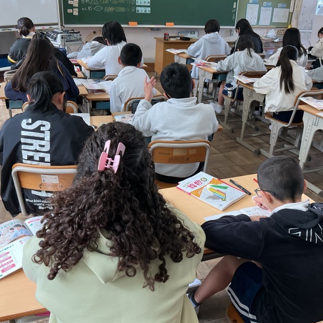 6年算数では、算数のとびらのページを学んでいました。今までに習った図形の面責の求め方を復習し、教科書の問題について考えていました。ノートに書くスピードもはやくなりましたね。