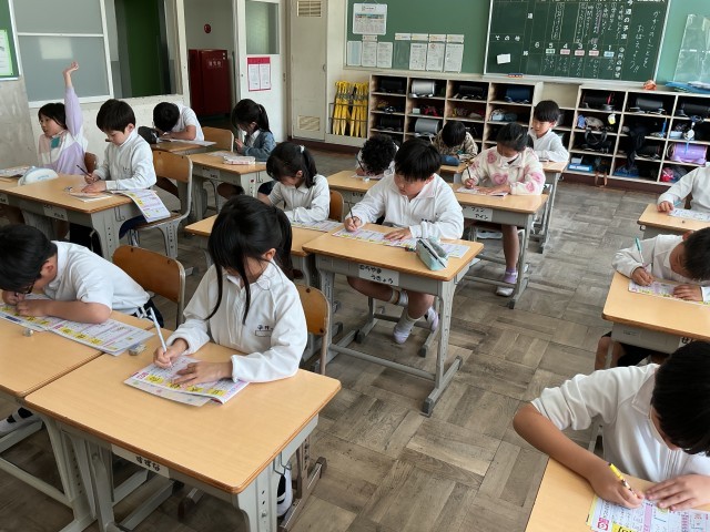 3年国語では、「新しい漢字を覚えよう」というめあてで学習を進めていました。1、2年生の漢字と比べると画数が増えてきます。書き順に気をつけて練習していました。