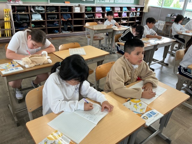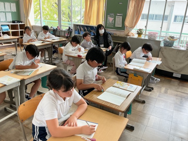 4年算数では、一億をこえる数の単元を学んでいます。「千億をこえる数のしくみを調べよう」というめあてで学習を進めていました。先生の問いかけに対して反応もよく、ノートにも素早く書き込んでいました。