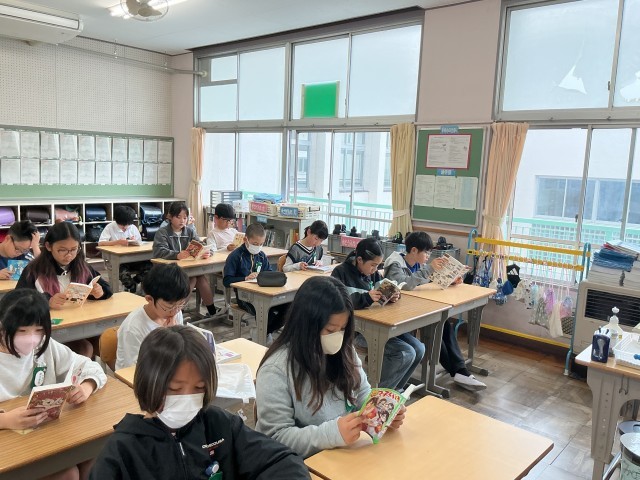 4/15 かがやき1 公開日 2026/04/15 更新日 2026/04/15 各学年から 8時25分までに朝の支度を済ませ、チャイムを合図に静かに読書が始まりました。いい姿勢で本を読むことができていますね。