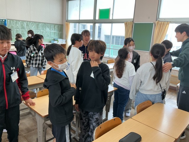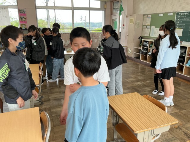 4/15 5年外国語 公開日 2026/04/15 更新日 2026/04/15 各学年から 5年外国語では、今年度最初のA L Tの先生と一緒の授業でした。あいさつと互いに名前を尋ねるスモールトークを行っていました。3分間で多くの人と会話をしていました。