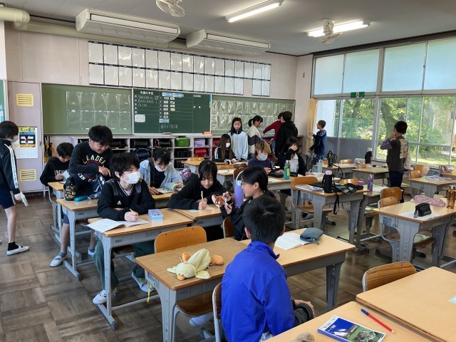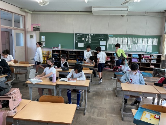 どの学級も時間を意識しながら、朝の支度を進めていました。友達と楽しそうに談笑する姿もたくさん見られました。