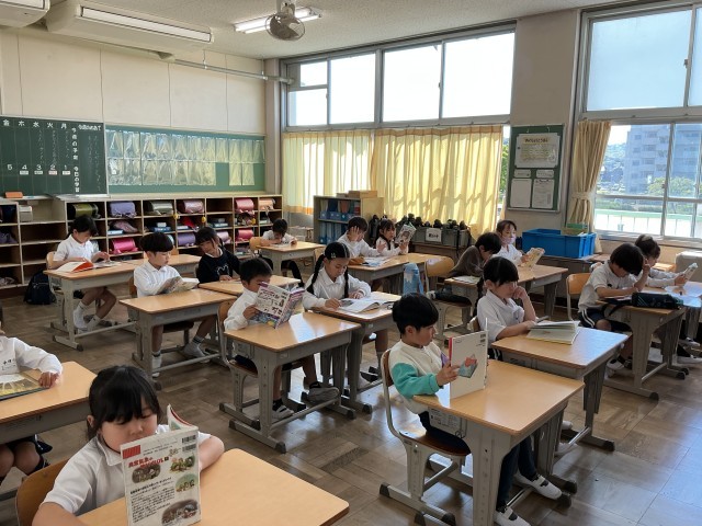 チャイムで気持ちを切り替えて静かに読書が始まりました。落ち着いた雰囲気で今日もスタートができました。