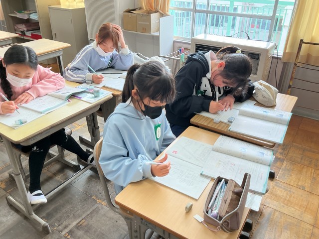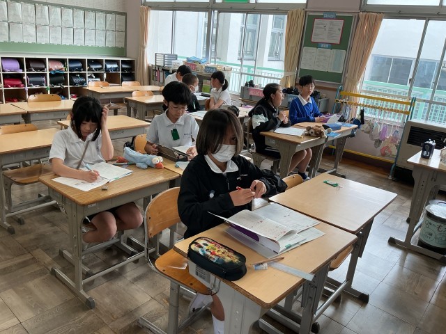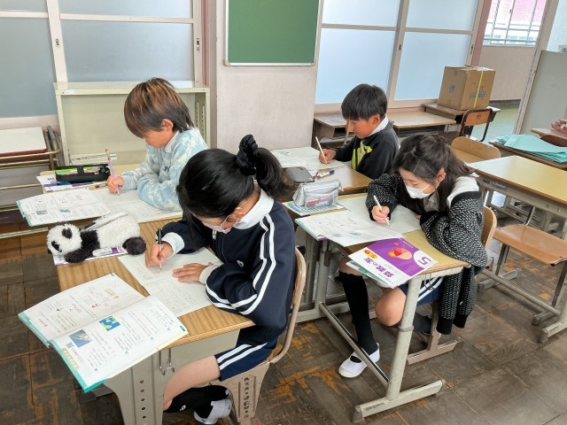 5年算数では、整数と小数の単元の確かめの問題を解いていました。集中して問題を解く姿がよかったです。小数の計算は今後も使っていくのでしっかり復習しておきましょう。