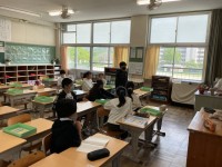 2年生は2限ランチルームで聴力検査を実施しました。先生の説明の後、2人ずつ検査を実施していました。今日は3限に1年、4限に7・8組が同じように聴力検査を実施していきます。