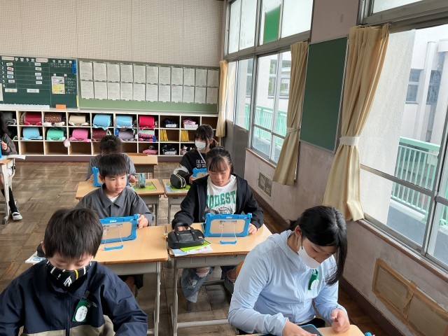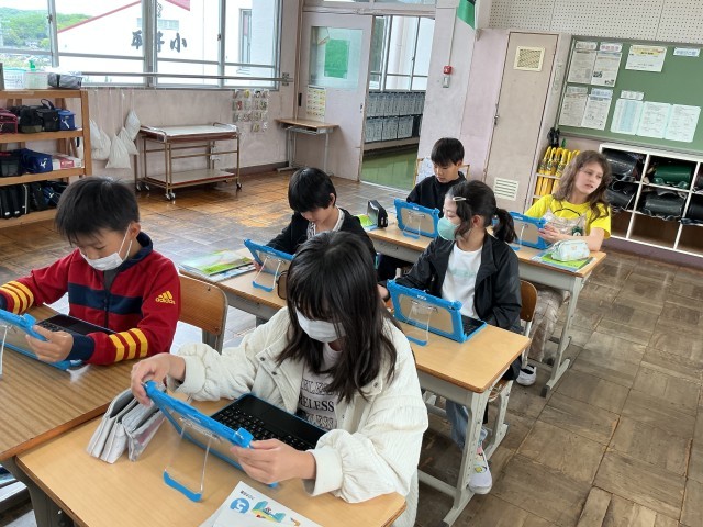 昨日GIGA始めで校長先生の話を聞いたり、使い方の指導を受けました。今日は初めて自分のタブレットを手にとり、立ち上げて見ました。キーボードがついていて今までのものと全然違うので興味津々でした。