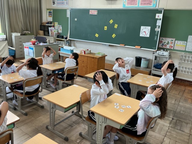 4/21 1年算数 公開日 2026/04/21 更新日 2026/04/21 各学年から 1年算数では、1から5までの数について学んでいました。入学してから約2週間ですが、先生の指示を落ち着いて聞くことができていました。1から5までのカードを机上に並べてかるたをしていました。