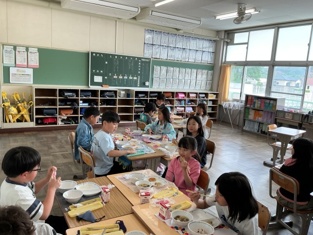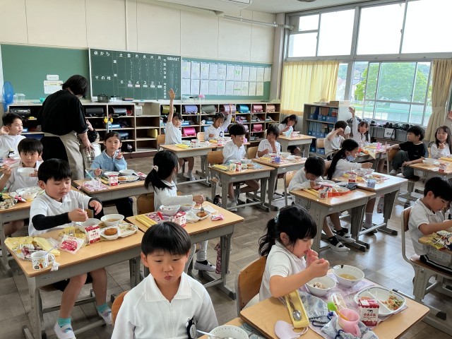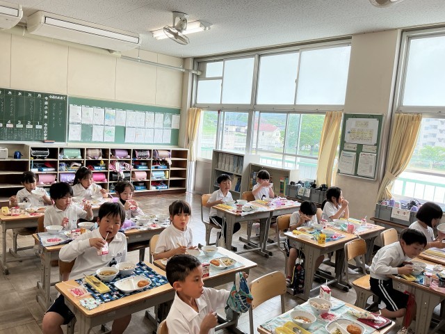 4/22 楽しい給食1 公開日 2026/04/22 更新日 2026/04/22 各学年から 今日の献立は入学・進級祝い献立で、赤飯が出ています。「美味しい」と笑顔で食べていました。給食の準備や片づけもしっかりできるようになってきました。