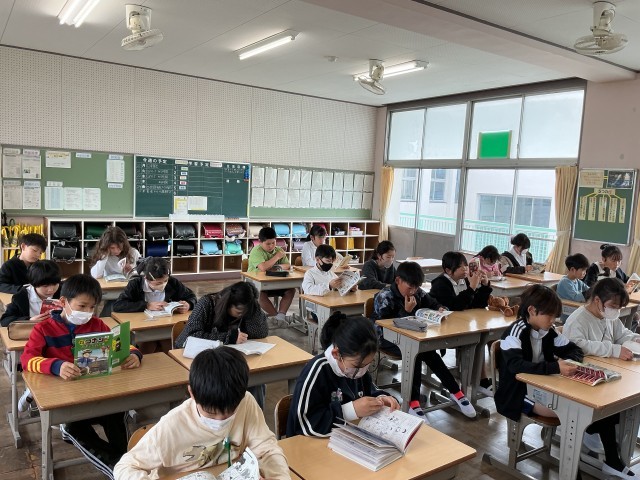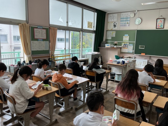 どの学級もチャイムで気持ちを切り替えて静かに読書ができるようになってきました。今日も落ち着いた雰囲気で一日がスタートできました。