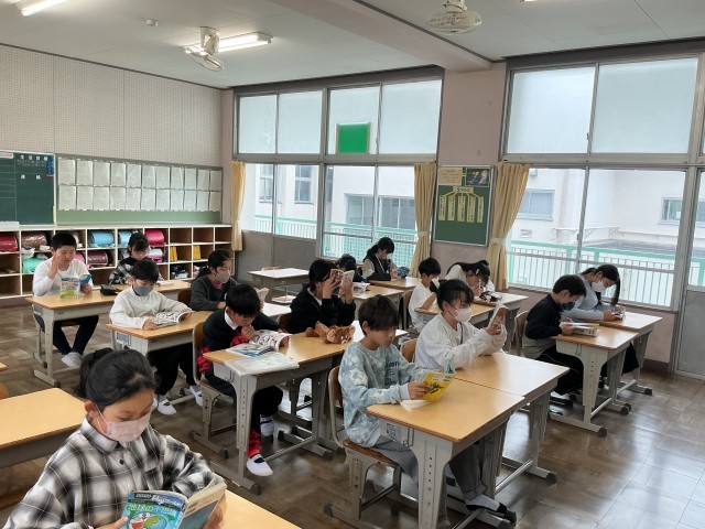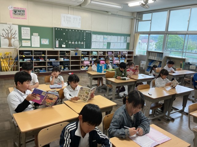 4/27 かがやき2 公開日 2026/04/27 更新日 2026/04/27 各学年から どの学級もチャイムで静かに読書が始まるので、落ち着いた雰囲気で一日がスタートできています。登校時の子どもたちの明るい話し声がいっぱいだったのに、かがやきの時間になると静寂に変わります。