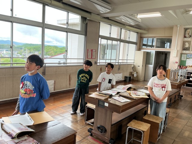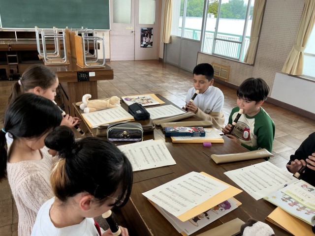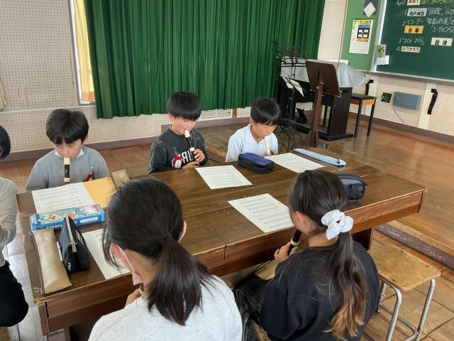 4/27 4年音楽 公開日 2026/04/27 更新日 2026/04/27 各学年から 4年音楽では、リコーダーで「聖者の行進」「さよなら」「エーデルワイス」を吹き、低い音が出せるように練習をしました。「曲にあった歌い方を工夫しよう!」というめあてで、「さくら さくら」をどのように歌うと良いか考えました。