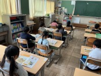 4年生は体育館で学級写真を撮った後、4年2組教室で学年集会を実施していました。今...