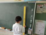 100センチものさしを使って、教室の中で100センチぴったりのもの、短いもの、超...