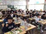 どの学級も友達との会話を楽しみながら会食をしていました。友達と食べる給食は美味...