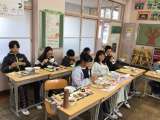 1年生図工では、絵の具で色を塗った魚を、クレヨンや色鉛筆を使って仕上げました。完...