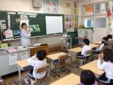 1年生の学級活動で、栄養教諭の岡野先生に栄養指導をしていただきました。「給食は誰...