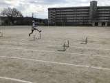 ハードル走の練習をしました。何度も挑戦しながら、ハードルを跳び越すタイミングや跳...