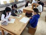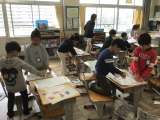 1年生図工では、紙版画を作成しています。今日は、作成した版画を友だちと協力して、...