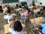 4年国語では、国語の月例テストを実施していました。漢字50問の書き取りテストで...