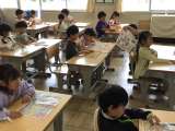 どの学年もチャイムがなると静かに読書が始まります。よい姿勢で本を読んでいます。...