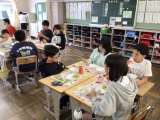 どの学級も楽しく会食をしていました。友達とお話をしながら食べる給食はおいしいよ...