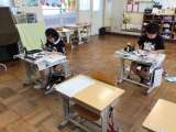 5年算数では、少人数で学習を進めていました。合同な三角形のかき方について考えて...