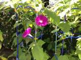 1年生が育てているアサガオが咲き始めました。色とりどりの花は、暑い夏も涼しい気分...