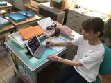 オンライン朝の会が終わると、お家の方と一緒にさっそく課題を提出にきた子たちがい...