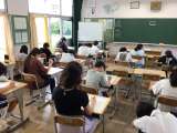 6年外国語では、UNIT4の単元テストを実施していました。リスニング問題もあり...