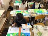 4年図工では、読書感想画の下書きが終わり、本格的に絵の具で色を塗っていました。...
