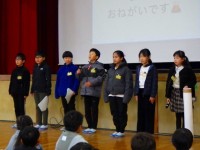 5年生が、3月4日(水)に行われる「6年生を送る会」について、1~4年生に説明と、協力のお願いをしました。