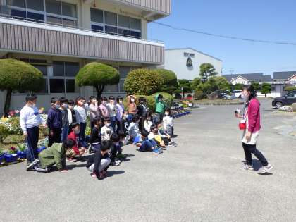 新しい学級になってクラス写真を撮るために、外に出てきた学級。天気もよくて、最高の撮影日和ですね。