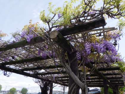 本校の藤棚です。とてもきれいに藤の花が咲いています。見ているだけで、癒されます。