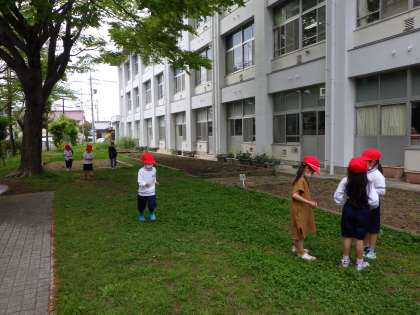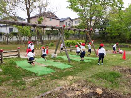 給食後の休み時間、子どもたちは外に出て元気よく遊んでいます。鬼ごっこをする子、ドッジボールをする子、虫探しをする子、ブランコをする子、それぞれが思い思いに過ごします。