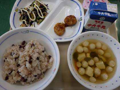 4月21日の給食は・・・ 公開日 2021/04/21 更新日 2021/04/21 お知らせ 4月21日の給食は、ふだま汁、赤飯、ひじきサラダ、ごまつくね、マヨネーズ風ドレッシング、牛乳、イチゴゼリー(豆乳クリーム添え)でした。本日は、赤飯やいちごゼリーが出て、入学・進級祝い献立でした。一年生の皆さん、学校は慣れてきたかな?