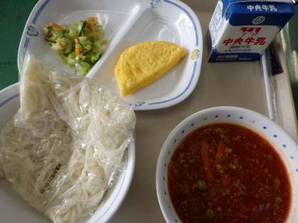 4月28日の給食は・・・ 公開日 2021/04/30 更新日 2021/04/30 お知らせ 4月28日は、ミートソースかけ、ソフトめん・ナッツサラダ、チーズオムレツ、コーヒー牛乳の素、牛乳でした。子どもたちの大好きなミートソース。今日も美味しくいただきました。