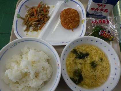5月7日の給食は・・・ 公開日 2021/05/10 更新日 2021/05/10 お知らせ 5月7日の給食は、かきたま汁、きんぴらごぼう、チキンミンチカツ、ごはん、かしわもち、牛乳でした。こどもの日献立ということで、かきたま汁とかしわもちが出ました。すくすく元気に育つように願いをこめてたけのこを使用したかきたま汁、とても美味しかったです。