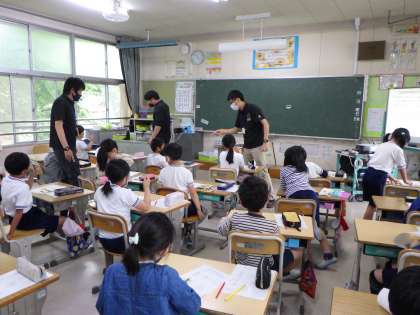 3年生「理科出前授業」 公開日 2021/05/18 更新日 2021/05/18 各学年から 5月17日、郷土資料館のスクールサポートを利用し、理科の「昆虫の体の仕組みを調べよう」の学習をしました。講師の先生方が持ってきてくださった甲虫の標本は樹脂標本だったため、虫の苦手な子どもでも細かいところまでじっくりと観察することができました。