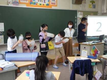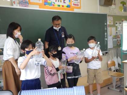 6月4日の2・3時間目に4年生が下水道出前授業を行いました。トイレットペーパーとティッシュをそれぞれペットボトルに入れて力強く振り溶け具合を比べました。さあ、どうなるでしょうか?