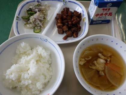 6月7日の給食は・・・ 公開日 2021/06/08 更新日 2021/06/08 お知らせ 6月7日の給食は、かしわ汁、ゆかりあえ、まぐろと大豆のみそがらめ、ごはん、牛乳でした。まぐろと大豆のみそがらめは、みそ味のまぐろが、ごはんととてもよくマッチしました。