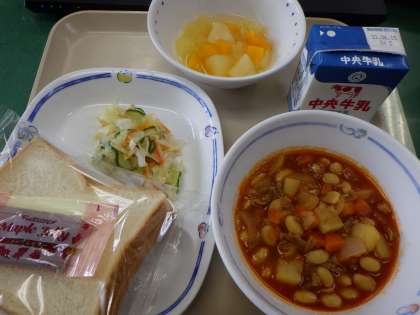 6月9日の給食は・・・ 公開日 2021/06/09 更新日 2021/06/09 お知らせ 6月9日の給食は、ポークビーンズ、ナッツサラダ、スライスパン、ミックスフルーツ、メープルジャム、牛乳でした。子どもたちの大好きなミックスフルーツ。暑い日に食べるとより一層さわやかな食感で美味しく感じました。
