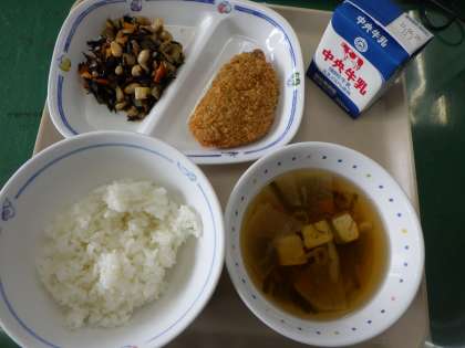 6月14日の給食は・・・ 公開日 2021/06/16 更新日 2021/06/16 お知らせ 6月14日の給食は、けんちん汁、ひじきの炒め煮、青じそ入りあじフライ、ごはん、牛乳でした。あじは、脂がのっていて臭みも全くなくとても美味しかったです。