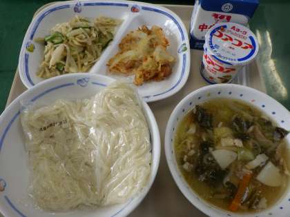 6月23日の給食は・・・ 公開日 2021/06/23 更新日 2021/06/23 お知らせ 6月23日の給食は、野菜あんかけめん、ごぼうサラダ、しらすと大豆のかき揚げ、豊田めん、ヨーグルト、牛乳でした。かき揚げは、愛知県産のしらすを使用。野菜あんかけめんもボリュームたっぷりでとても美味しかったです。